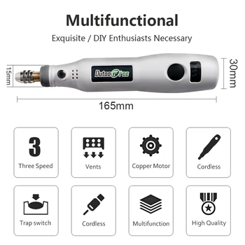 3 Speed USB Cordless Rotary Tool Dremel DIY Mini Drill Engraving Pen Electric USB Mini Wireless Drill With Accessories Set