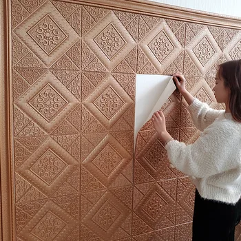 10Pcs, 70×70cm Ceiling Wallpaper 3D Foam Brick Wallpaper Adhesive Wall Decor Wall Stickers