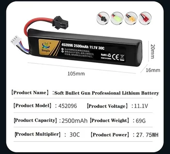 11.1v Lipo Battery for Water Gun Airsoft 11.1V, 3S, 2500mAh, 30C, 452096 battery for Airsoft BB Air Pistol Electric Toys Guns Parts