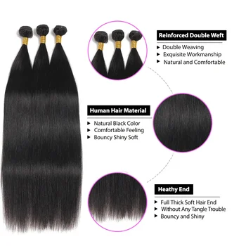 12A Brazilian Kinky Straight Hair Bundles Yaki Straight, 100% Virgin Human Hair Extensions 1/2/3/4 PCS Hair Weave For Black Women