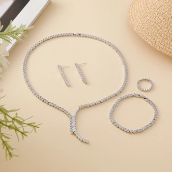 Fashion Minimalist 4-piece Cubic Zirconia Bridal Wedding Jewelry Set Saudi Nigeria Women’s Romantic Wedding Dress