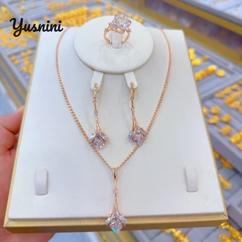 Rose Gold Color Bridal Jewelry Sets CZ Austrian Crystal Necklace Earring Sets Luxury Jewelry Bijoux Femme