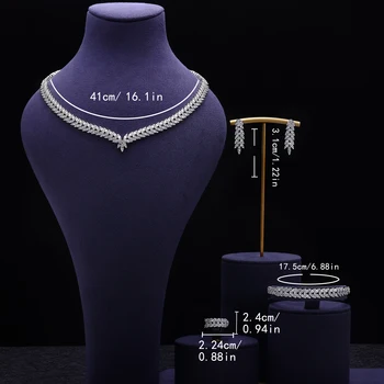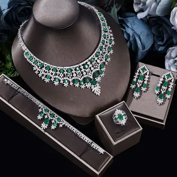Luxury Women Jewelry Elegant Shape Bridal CZ necklace earrings bracelet ring jewelry sets and Big Wedding Jewelry Sets For Bride