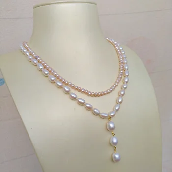 Fashion jewelry noble jewelry huge 7-8mm AAA Freshwater natural white pearl pendant 925silver 16.8-18.5 inches