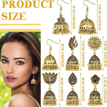 Ethnic Style Boho Vintage Antique Alloy Carved Bell Tassels Drop Earrings Jhumke Jewelry For Women Party Accessories