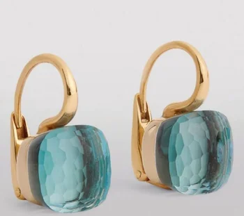 Hot Fashion Gold Color Square Stud Earrings Blue Rhinestone Earring For Female Gift Custom Jewelry