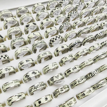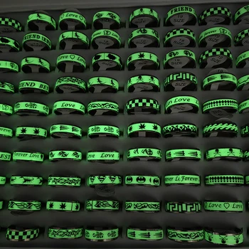 20pcs/Lot Noctilucent Bright in Night Stainless Steel Finger Rings for Men Women New Glow Joint Ring Party Bar Jewelry