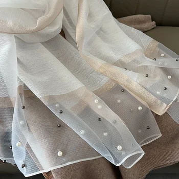 Vintage Print Chiffon Shawl Pearl Scarf Women Sun Protection Scarves Summer Beach Multifunctional Silk Scarf 150x100cm