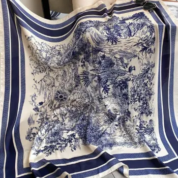 90*90cm Versatile Silk Scarf Women Large Shawl Floral Print Stoles Square Bandanna Luxury Brand Kerchief Female Foulard muffler