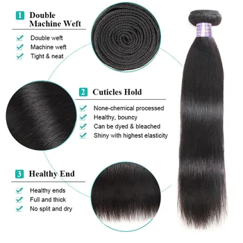 Brazilian Hair Bundles Silky Straight Human Hair Bundles Natural Color Human Hair Extensions Thick Hair Weaves Bundles