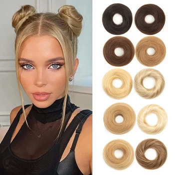 Blonde Human Hair Buns Chignon Updo Donut Wrap Ponytail Hair Extensions Remy Hairpiece Real Natural Human Hair 11 Color