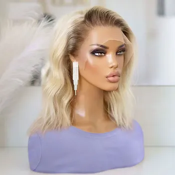 Synthetic Wig Ombre Short Wavy Blonde Lace Front Bob Wigs For Women Cosplay Colored Wig 150% Density Glueless