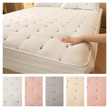 Thicken Mattress Cover 90×200 Fitted Sheets Queen Size Elastic Bedsheet Embroidered Bed Covers 매트리스커버 (Pillowcase need order)