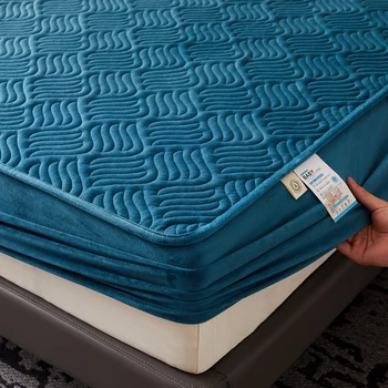 Plush Thicken Quilted Mattress Cover Warm Soft Crystal Velvet King Queen Quilted Bed Fitted Sheet Not Including Pillowcase