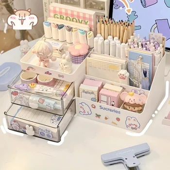 Desktop Cosmetic Storage Box Organizer Drawer Office Storage Rack Stationery Desk Pen Holder Bunny Drawer Organizer Cute Kawaii