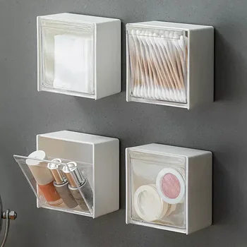 Plastic Wall Mounted Storage Boxes Dustproof Bathroom Organizer for Cotton Swabs Makeup Adhesive Small Jewelry Holder Box