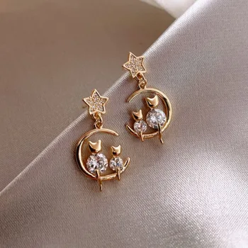 New Trendy Moon Dangle Earrings for Women Temperament Pearl Cherry Cat Rhinestone Pendant Earring Girl Party Jewelry Gift