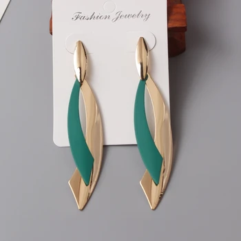 European Statement Geometric Leaf Drop Earrings for Women Long Brincos Party Jewelry Smooth Green Red Color Christmas Gift Product: 100%