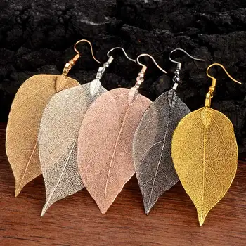 Fashion Design Unique Big Natural Real Leaf Earrings Bohemian Dangle Drop Long Earrings for Women Wedding Jewelry Gift