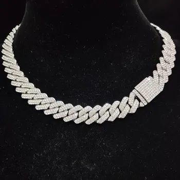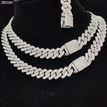 New Hip Hop Rhombus Cuban Chain Iced Out Bling Necklace Men Women 15mm width Chains Hiphop Crystal Necklaces Fashion Jewelry