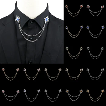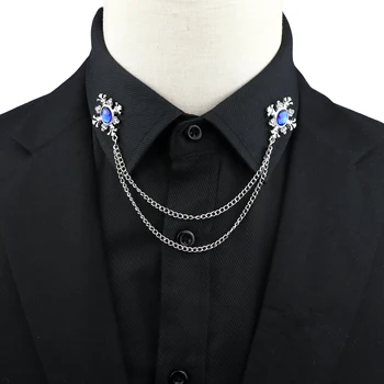 Fashion Gentleman Tassel Brooch For Men Suit Shirt Collar Crystal Cross Chain Lapel Pin Rhinestone Retro Wedding Accessories Condition: Brand