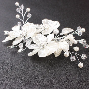 Trendy Tiara Wedding Hair Comb Flower Bridal Hairpins Pearl Rhinestone Head Jewelry Lady Wedding Hair Accessories Marriage bijoux Description Handmade