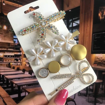 Pearl Crystal Acrylic Hair Clips Set for Women Retro Geometric Barrettes Hairpin Girl Hair Accessories Fashion Jewelry