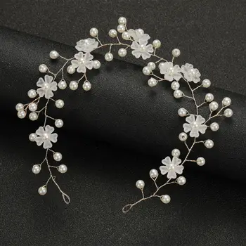 Pearl Headband Soft Chain Net Hairbands for Bride Wedding Party Hair Accessories Fashion Beaded Headdress Women Novia Jewelry