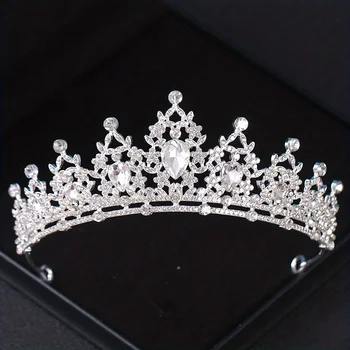 Wedding Hair Tiara Crystal Bridal Tiara Crown Silver Color Diadem Veil Tiaras Wedding Hair Accessories Headpieces Head Jewelry