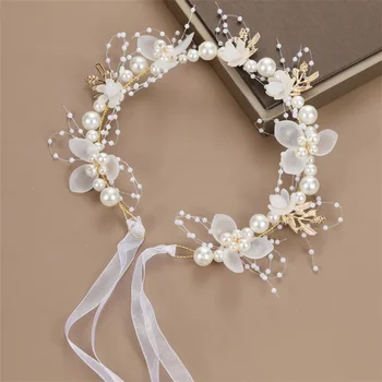Spring Bohemian Girls Bridal Pearl Hair Headdress Flower Wreath Bride Garland Head Hoop Headbands Hair Jewelry Children Gifts