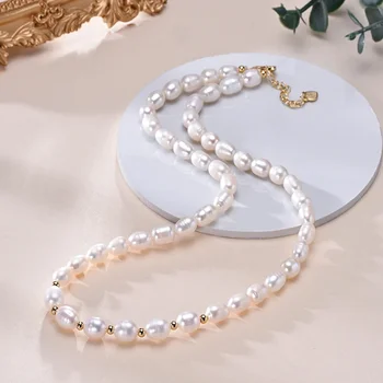 6-7mm Rice Shape Freshwater White Pink Purple Mixed Color Pearl Necklace 925 Sterling Silver Jewelry for Women Girls