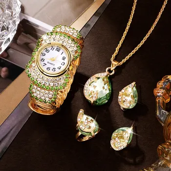 New Luxury Watches Rhinestone Women Fashion Elegant Wristwatch Female Quartz Watch For Girl Ladies Jewelry Set Relogio Feminino