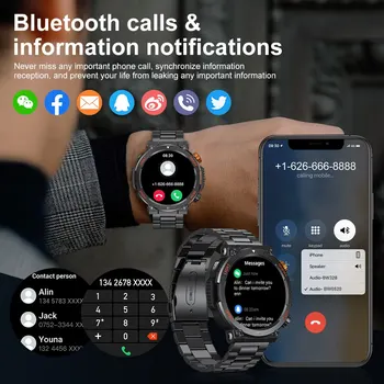 New Rugged Military Black Smart Watch Men for Android Xiaomi Ios 3ATM Waterproof Sport Fitness Ai Voice Smartwatch Outdoor