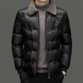 Men Autumn Winter Cotton Jacket Fur Collar Warm Comfortable Padded Thickened Down Jacket New Solid Clothes L-5XL Coat