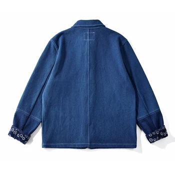 Vintage Indigo Jacket Men French Workwear Cargo Tooling Jacket Autumn Winter Blue Dyed Kendo Fabric Multi-pocket Cardigan Coat Fabric: