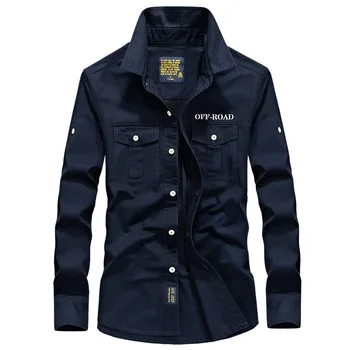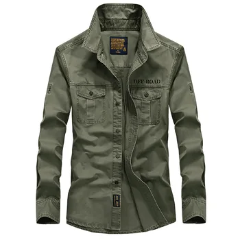 Clothing Men Casual Shirts Cotton Long Sleeve Camiseta Masculina Denim Shirt Men Army Military Black Khaki Size S-4XL, 5XL