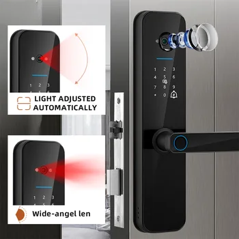 Tuya WiFi Digital Electronic Smart Door Lock With Biometric Camera Fingerprint Smart Card Password Key Unlock Good News. The products
