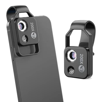 200X Cell Phone Microscope Accessory With CPL Lens, Portable Mini Digital Microscope With LED Light/Universal Clip