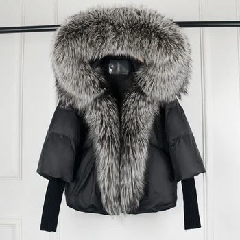 New Winter Women Real Fox Fur Collar Thick Warm Puffer Coat Hooded Down Jacket Luxury Outwear Female Loose Parkas