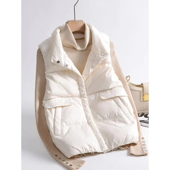 Autumn Winter Ultra Light Thin Duck Down Jacket Women Quilted Short Warm Basic Vest Casual Pocket Waistcoat Female Coat