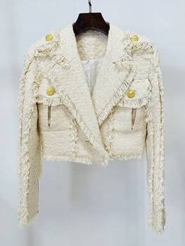 HIGH STREET Newest Fashion Designer Women’s Tassel Fringed Tweed Trimmed Jacket