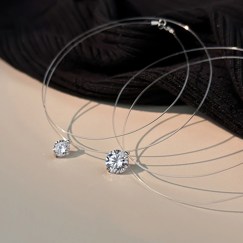 925 Sterling Silver Transparent Fishing Line Choker Chain |