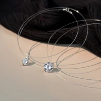 0.5-2CT Moissanite Pendant Necklace Women GRA Certified 925 Sterling Silver Transparent Fishing Line Choker Chain Jewelry