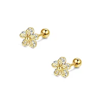 1 pair of everyday everything sweet earrings, double shiny zircon flower earrings for women and girls