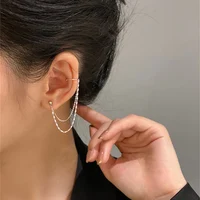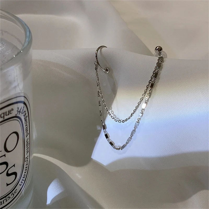 1 Pc Multi Layer Chain Earrings Long Tassel Piercing Stud Earring Ear Cuff Women’s Clip Earrings Silver Color Ear Jewelry