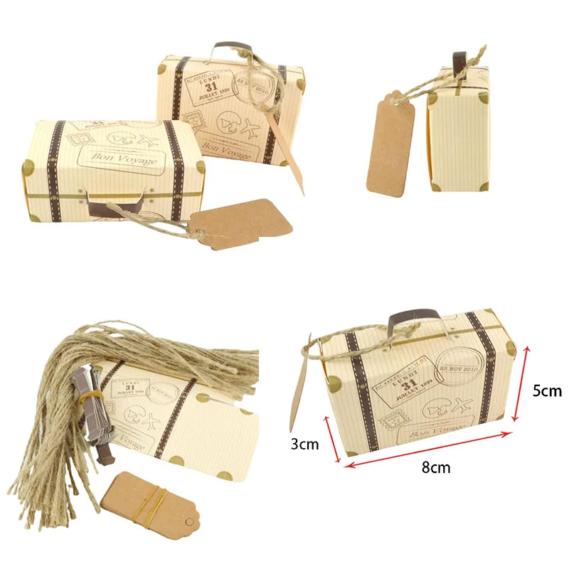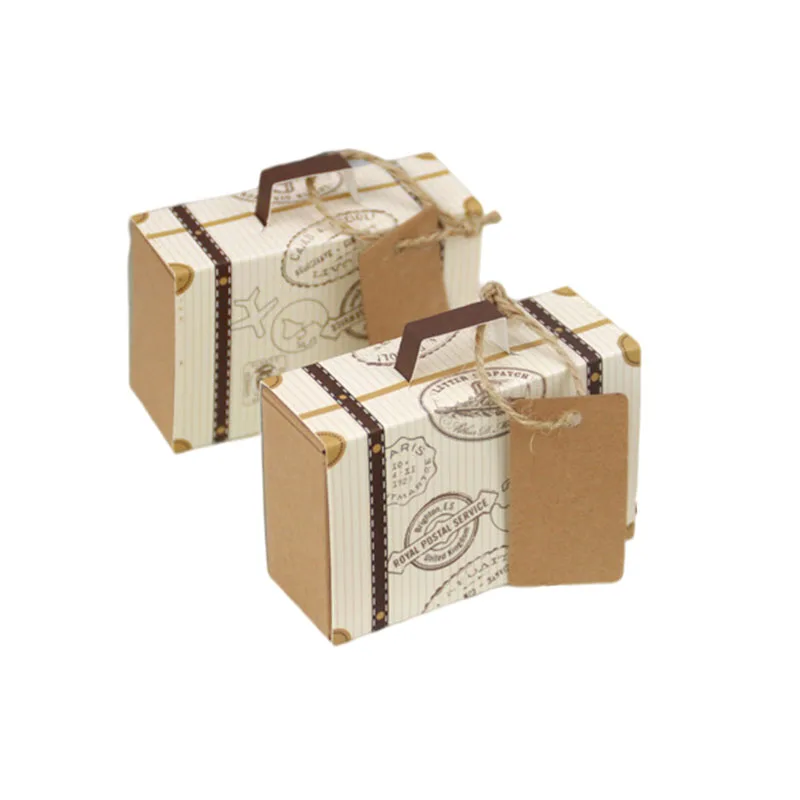 10/20/50pcs Mini Travel Suitcase Candy Box Kraft Paper Chocolate Favor Gift Box Packaging Bag Wedding Birthday Party Decoration