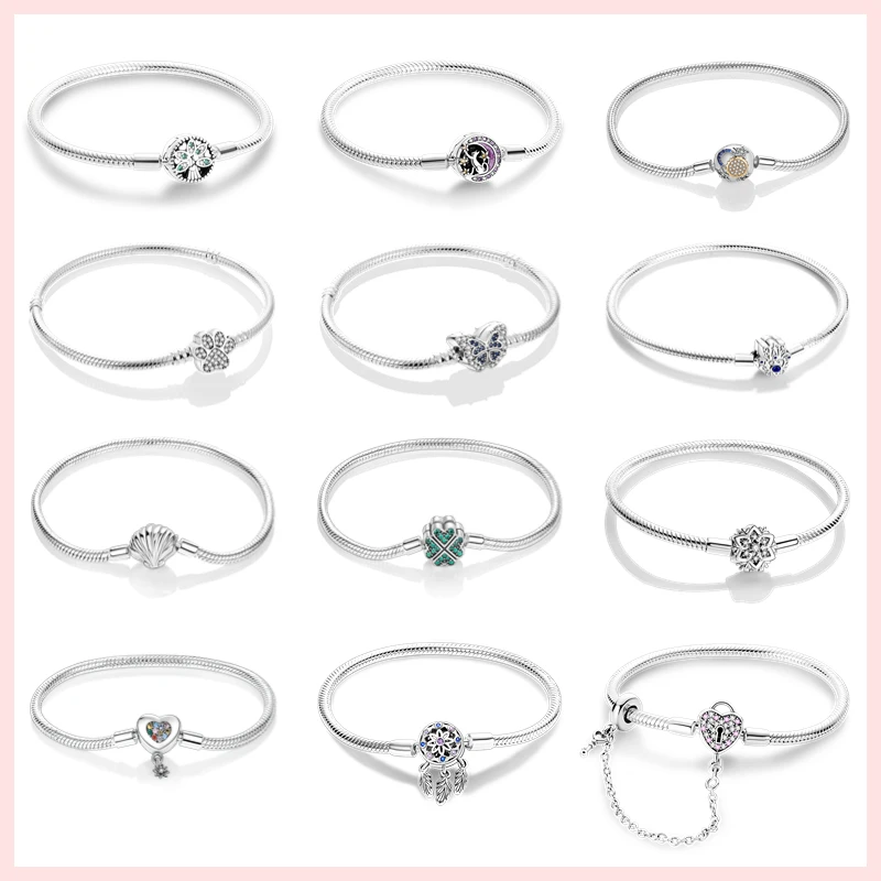 100% 925 Sterling Silver Love Heart Life Tree Snake Bracelet Luxury Jewelry Fit for Original Charms Bead DIY Making Jewelry