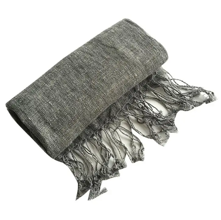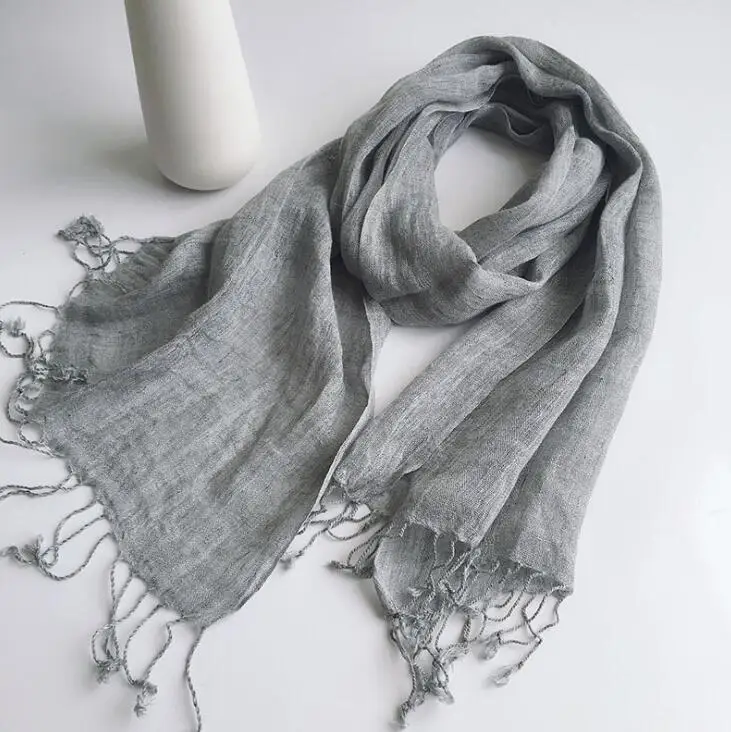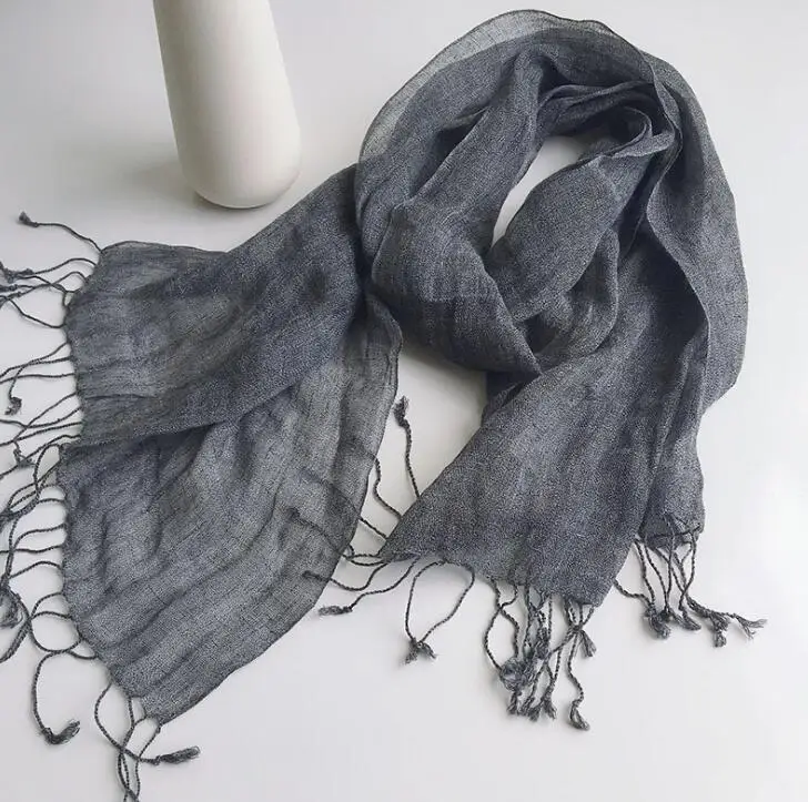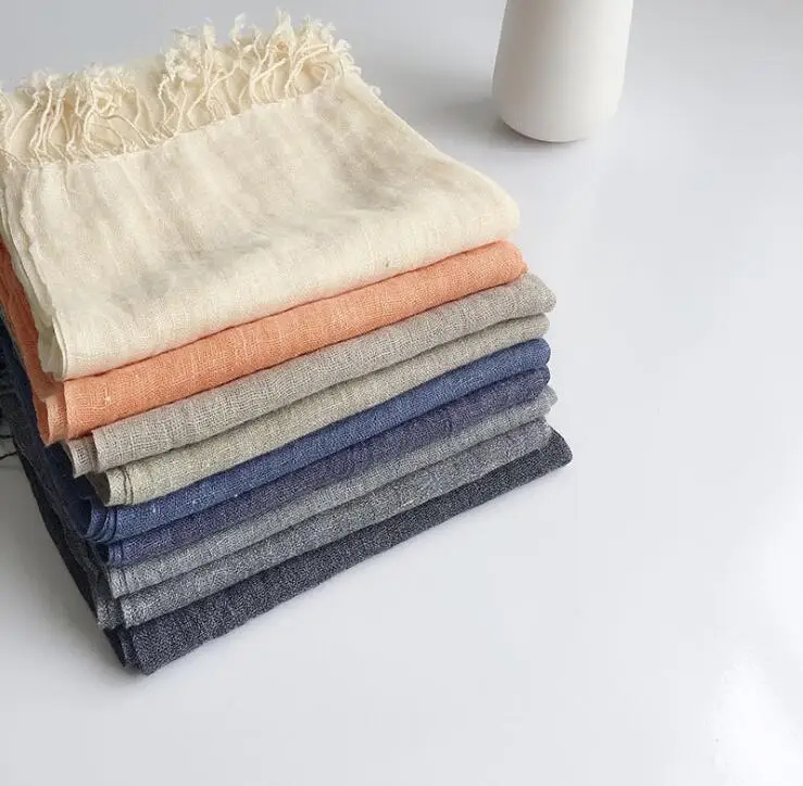 100% Linen Solid Colour Men’s’ Scarves Summer Spring Japanese Style Air Conditional Shawls Large Size Wraps With Tassels 45x200cm