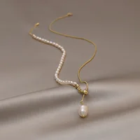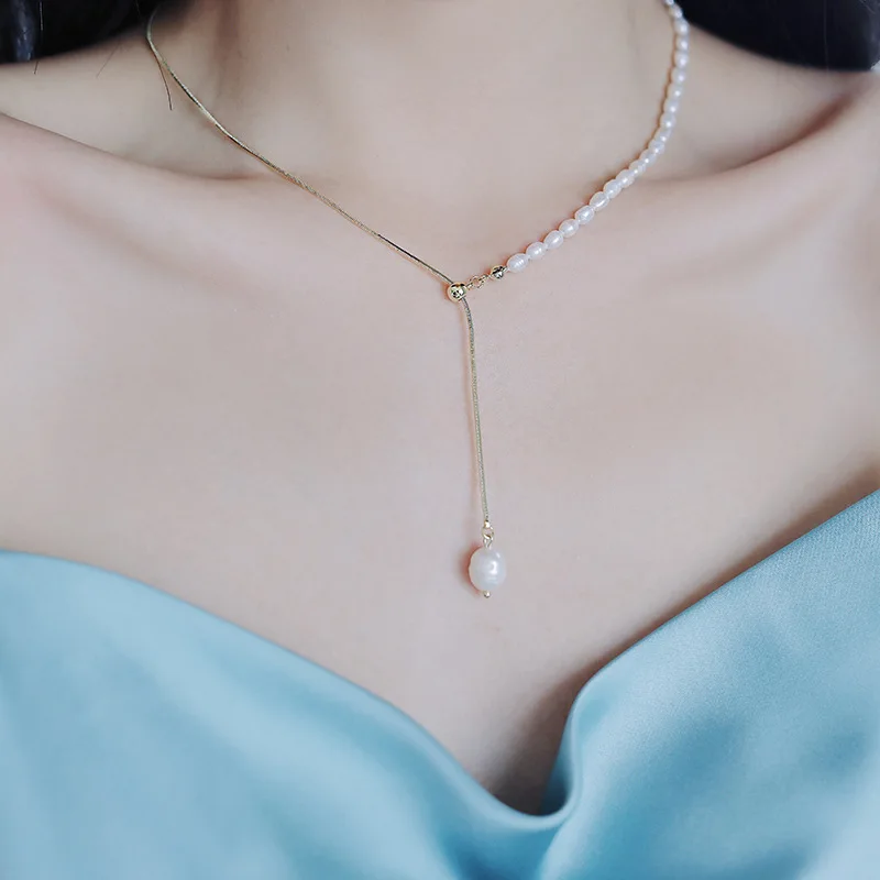 100% Natural Freshwater Pearl 14K Gold Filled Trendy Female Pendant Necklace Jewelry For Women Snake Chains No Fade