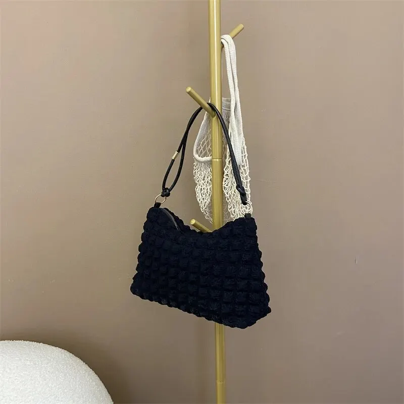 100% Polyester Solid Plaid One-shoulder Women’s Bag Handbag